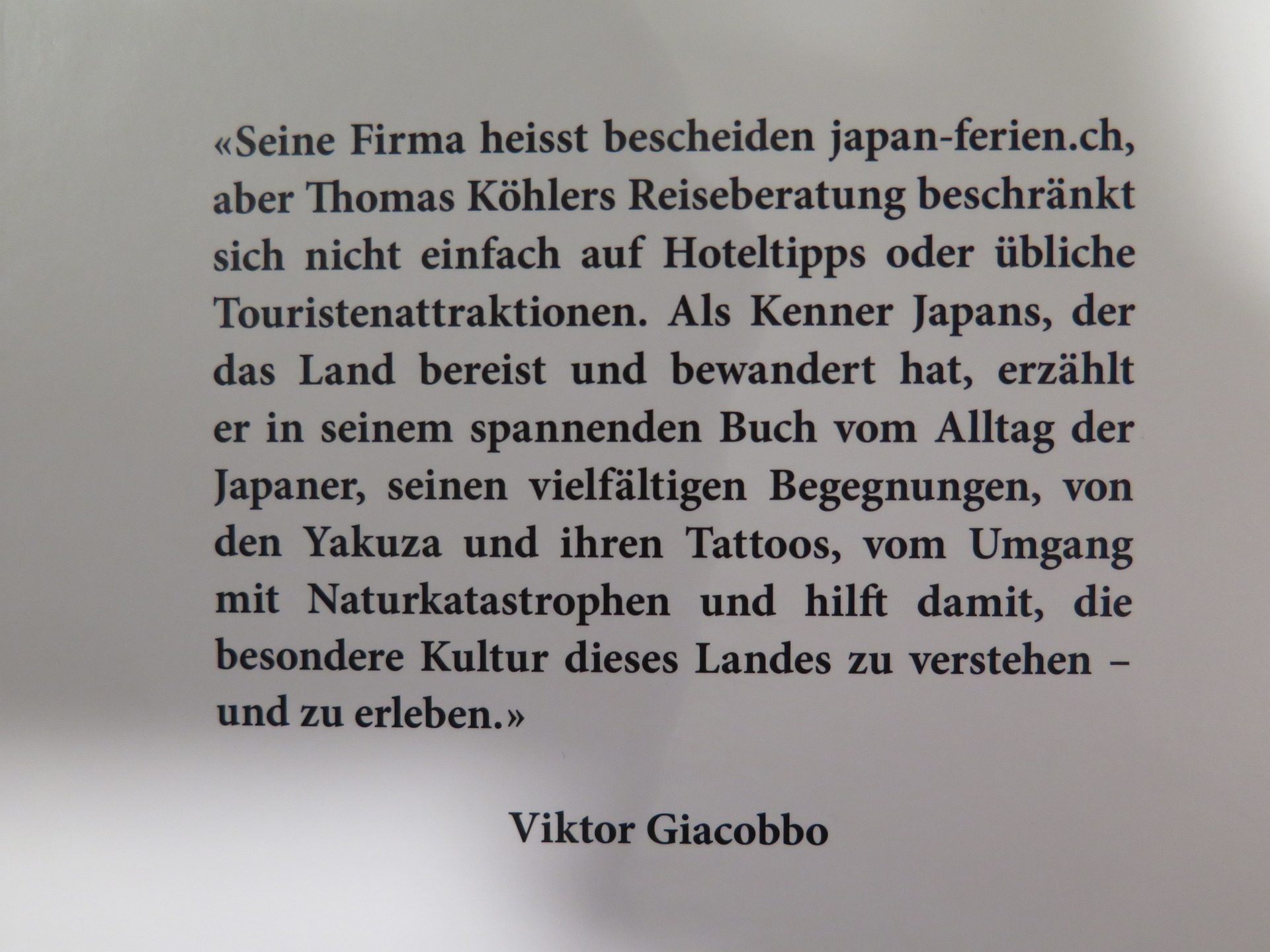 Dieser Band von Jan Knüsel und Thomas Köhler ist die kompakte Chronik einer inspirierenden, zweijährigen Reise, inklusive dem Entstehen des Dokumentarfilms Negative: Nothing, dem Film, der während sechs Monaten auf allen Langstreckenflügen der Swiss Airlines gezeigt wurde und zum Symbol für die über 150-jährige Freundschaft zwischen Japan und der Schweiz geworden ist!
